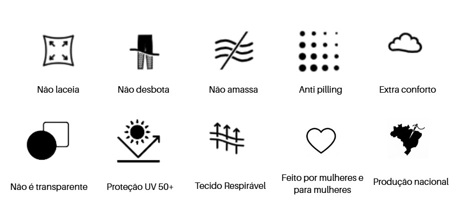 Tecnologia: Frente totalmente lisa sem costura, forro duplo frontal para maior firmeza e proteção UV 50+ (SUN PRO UV) integrada às fibras. O tecido não amassa, não cria bolinhas e dispensa passadoria, mantendo o aspecto de nova por mais tempo.